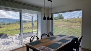 - Pionowe – praktyczne rozwiązanie do dużych przeszkleń i przestrzeni biurowych,